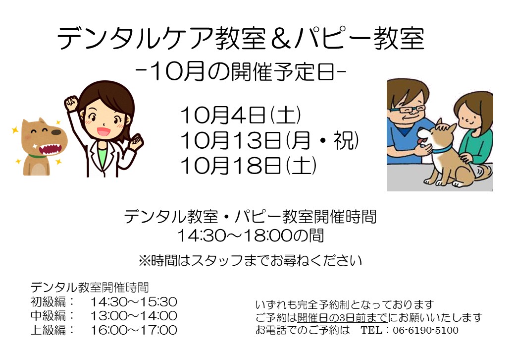 パピー教室・デンタル教室 10月の日程のお知らせ